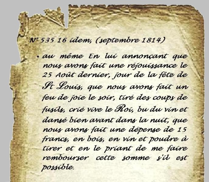 Le 16 septembre 1814, le Maire, Maurice Richeux, écrit au Sous Préfet